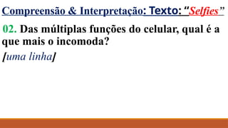 Compreensão & Interpretação:Texto: “Selfies”