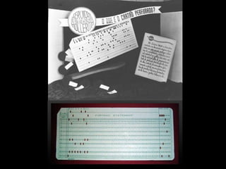 O documento descreve a evolução dos instrumentos de cálculo e computação ao longo dos séculos, desde o ábaco milenar até os computadores modernos. Detalha marcos como a máquina de Pascal no século 17, o primeiro computador automático Mark I construído para fins bélicos na década de 40 e o desenvolvimento da Internet a partir da década de 60 impulsionado pelo governo americano.