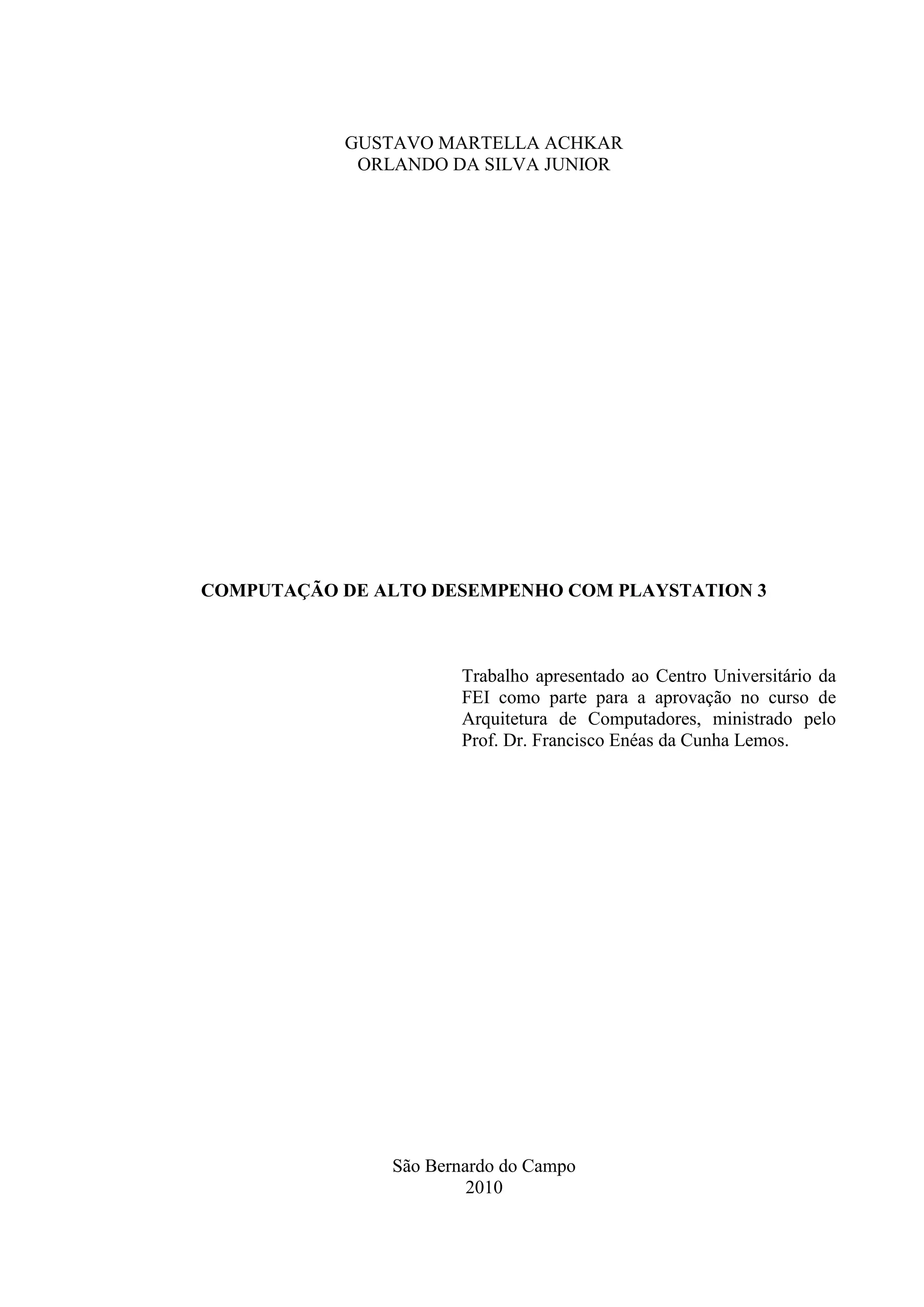 1. O documento descreve a arquitetura do processador Cell e como ele é utilizado na PlayStation 3 para computação de alto desempenho.