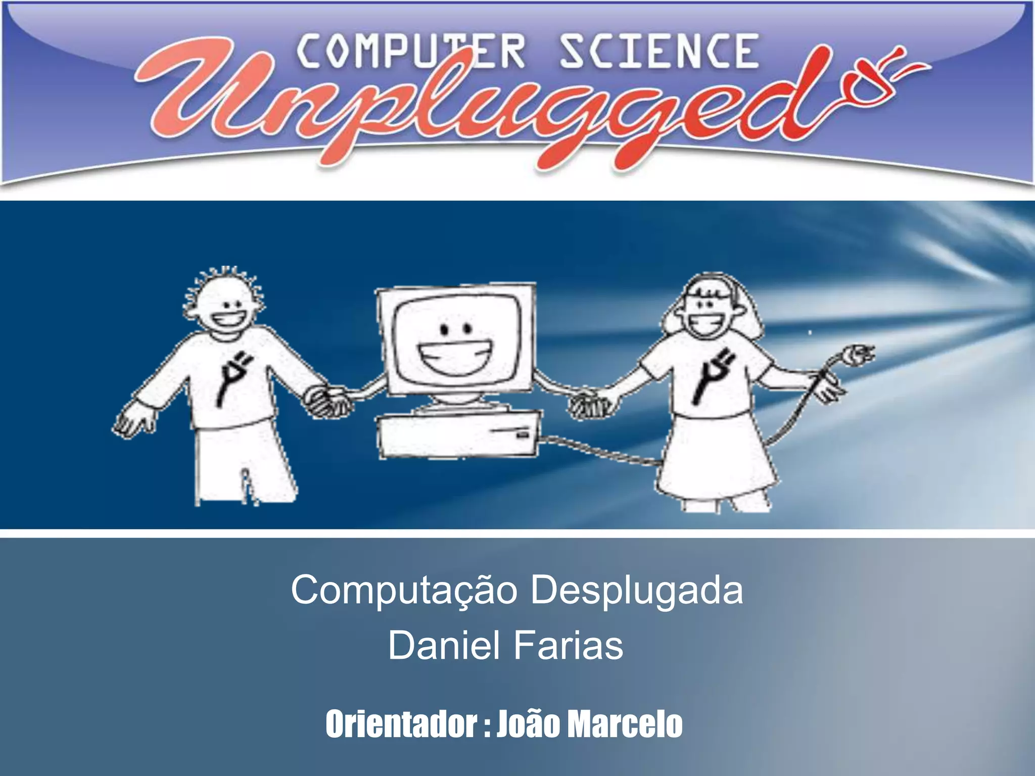 Este documento descreve um projeto de ensino de computação chamado "Computação Desplugada", que ensina conceitos de computação sem o uso de computadores através de jogos e dinâmicas. O objetivo deste projeto é introduzir esta metodologia para estudantes universitários e de ensino médio, avaliando os resultados. As dinâmicas apresentadas incluem algoritmos de ordenação e busca. Os resultados indicaram que a maioria dos alunos conseguiu compreender claramente esses conceitos através desta abordagem lúdica e sem computadores.
