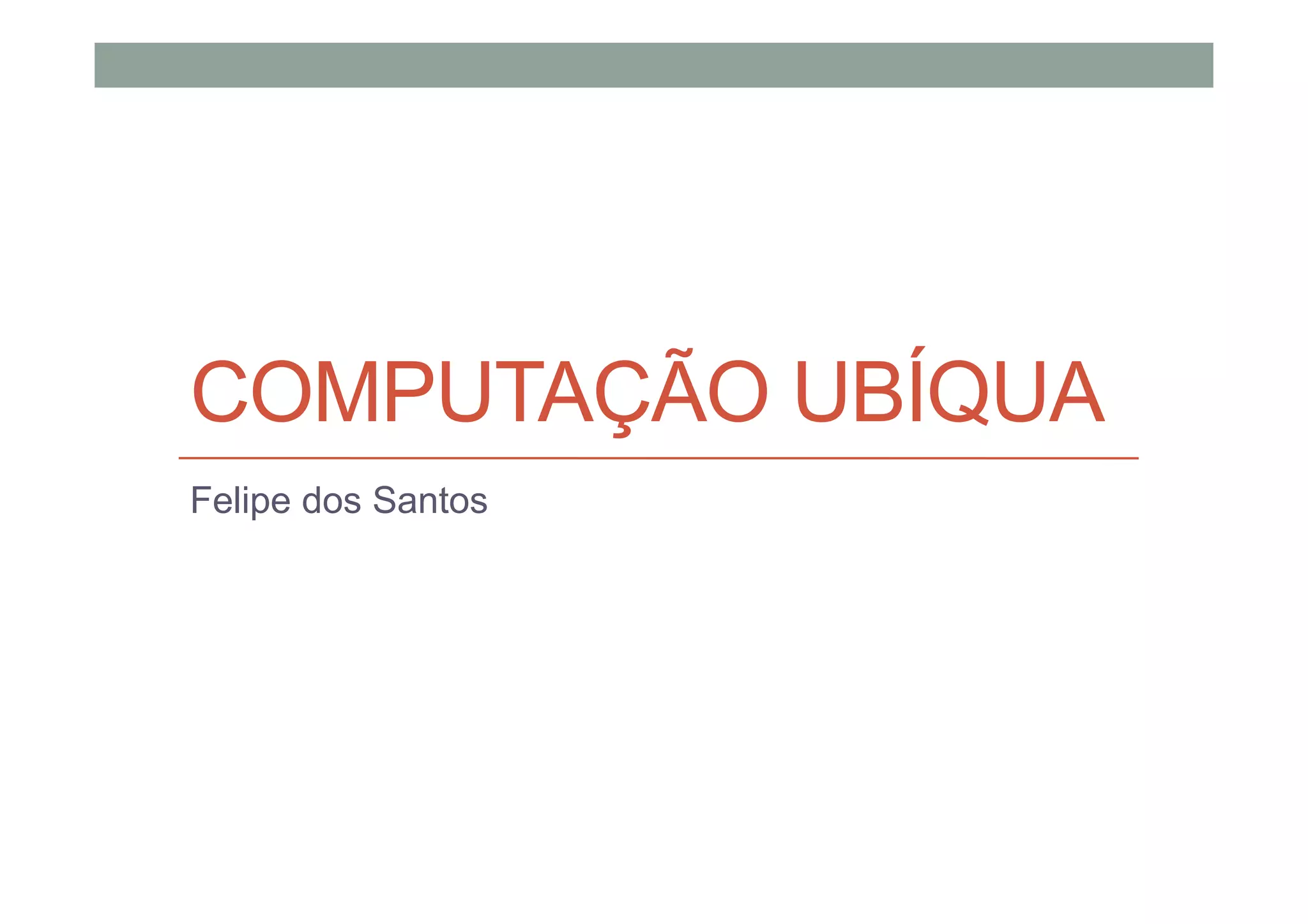A computação ubíqua visa tornar a interação entre pessoas e máquinas invisível, integrando a tecnologia de forma natural nos comportamentos humanos. Isso é feito através de dispositivos distribuídos que cooperam entre si para fornecer informações aos usuários de forma imperceptível. Diferente da realidade virtual, a computação ubíqua busca melhorar o mundo real com tecnologia invisível.