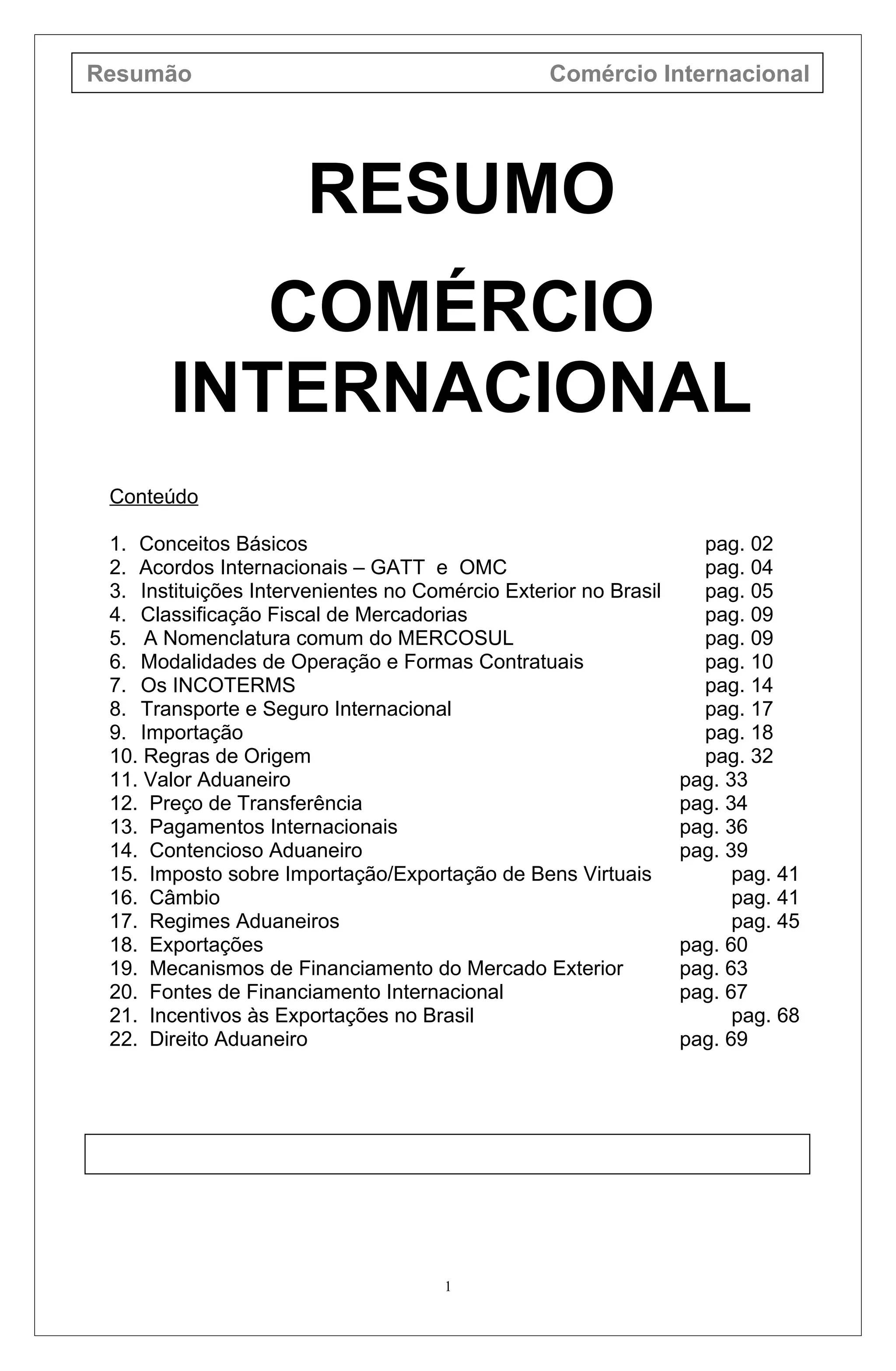 1. O documento discute conceitos básicos e instituições envolvidas no comércio internacional no Brasil. 2. As principais instituições são o Conselho Monetário Nacional, a Câmara de Comércio Exterior e a Secretaria de Comércio Exterior, que definem políticas e regulamentam operações de importação e exportação. 3. O Banco Central do Brasil controla a política monetária e cambial e regula o Sistema Financeiro Nacional.