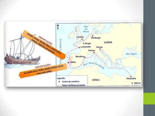O documento descreve a evolução do comércio no Brasil desde o século XIII, quando a maioria da população trabalhava na agricultura de subsistência, até o desenvolvimento do comércio interno e externo. Também aborda os conceitos de mercantilismo, balança comercial e dívida externa brasileira.