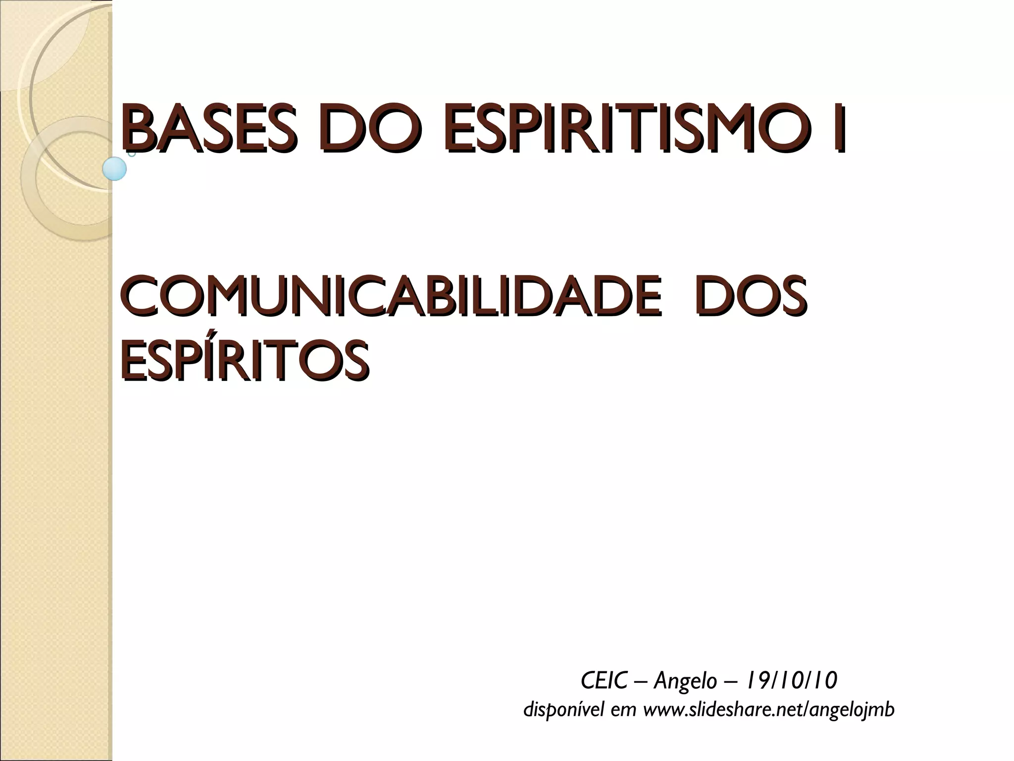 O documento explora as bases do espiritismo e a comunicabilidade dos espíritos ao longo da história, abordando a mediunidade em diversas épocas, desde a primitiva até a contemporânea. Destaca a constante interação entre o mundo físico e o espiritual, assim como a proibição de evocar os mortos na tradição mosaica e a justiça dessa proibição. Além disso, discute a utilidade prática das manifestações espíritas e a relação entre o visível e o invisível.