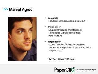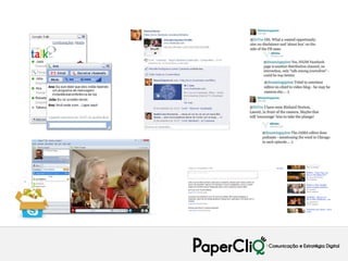 O documento discute o cenário da web no Brasil e o comportamento do cidadão online, destacando (1) a maior circulação de informações e capacidade de mobilização, (2) o surgimento de novas formas de construção de sentido e economia da customização em massa, e (3) a necessidade de os políticos fazerem parte das conversas nas mídias sociais de forma estratégica e evitando apenas promover a si mesmos.