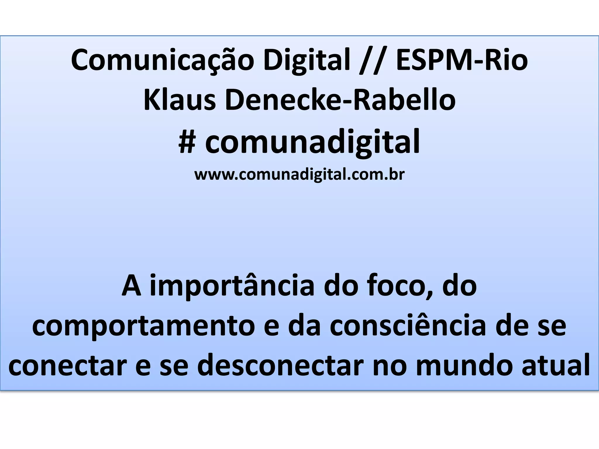 O documento discute os desafios da conectividade constante no mundo moderno, incluindo a falta de foco e concentração devido ao uso excessivo de dispositivos móveis, a diminuição da sociabilidade e a importância de saber se conectar e desconectar em diferentes momentos.