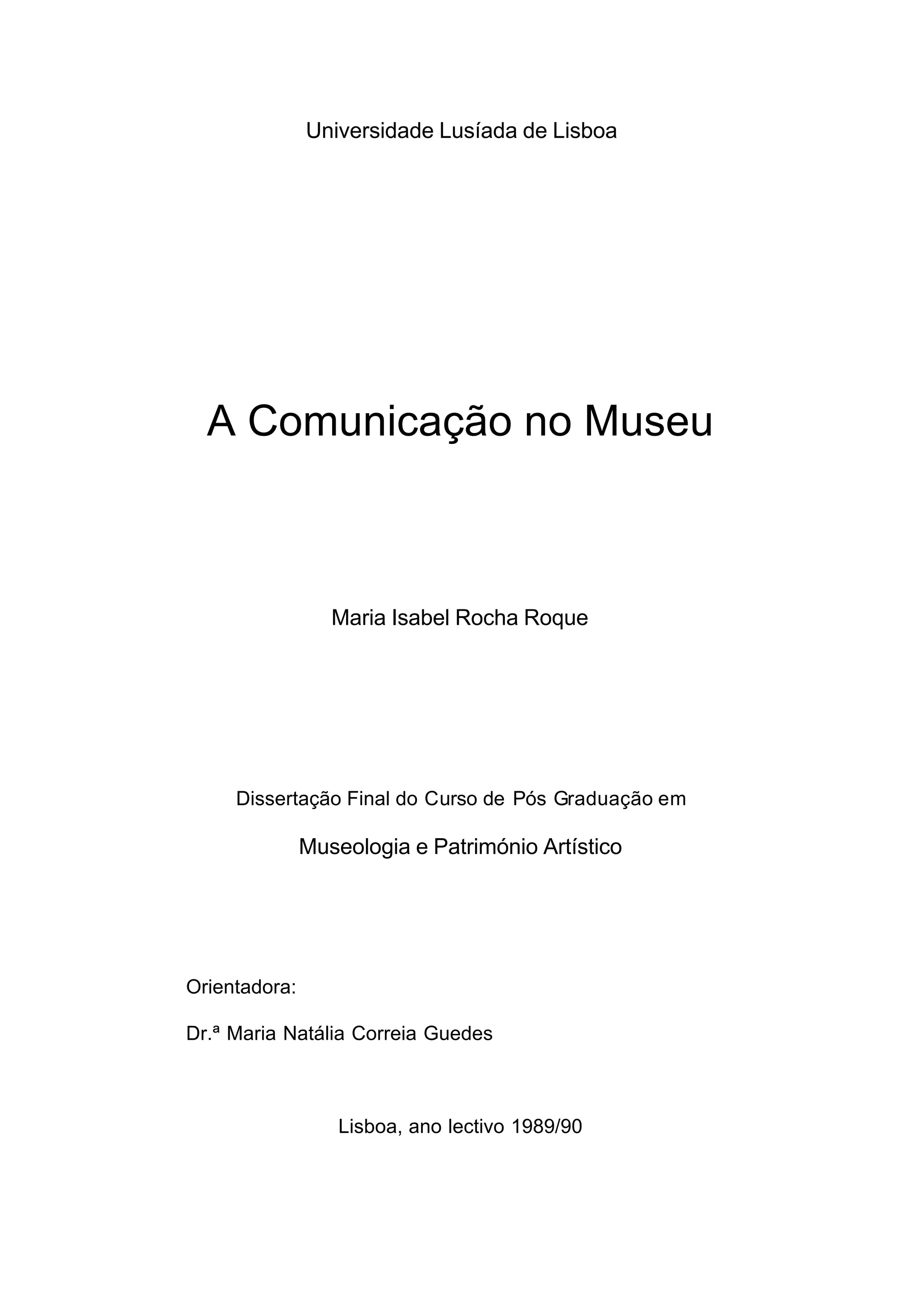 A dissertação de Maria Isabel Rocha Roque analisa a comunicação nos museus, enfatizando sua evolução de instituições passivas para centros de interação educativa e cultural. O trabalho destaca a importância de adaptar estratégias comunicativas para engajar um público cada vez mais diverso e as práticas de dinamização necessárias para manter a relevância dos museus na sociedade contemporânea. A pesquisa propõe que a compreensão e apreciação dos objetos museológicos são fundamentais para proporcionar experiências enriquecedoras aos visitantes.