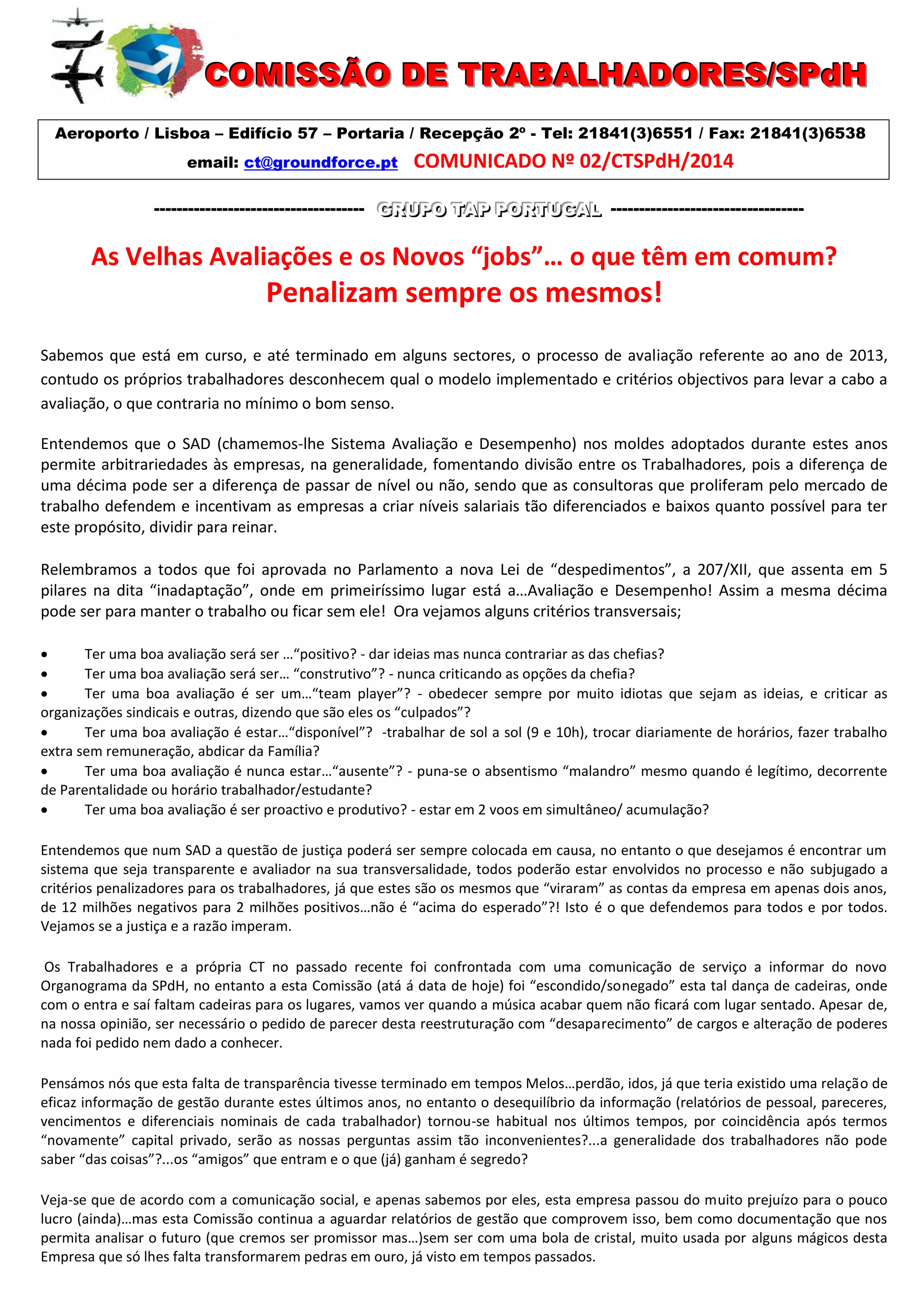 A Comissão de Trabalhadores expressa preocupações sobre o processo de avaliação de desempenho e a alegada falta de transparência. Critica novas contratações externas sem concursos internos e a desvalorização do conhecimento dos funcionários de longa data. Pede diálogo e que os sacrifícios dos trabalhadores sejam reconhecidos para o sucesso contínuo da empresa.