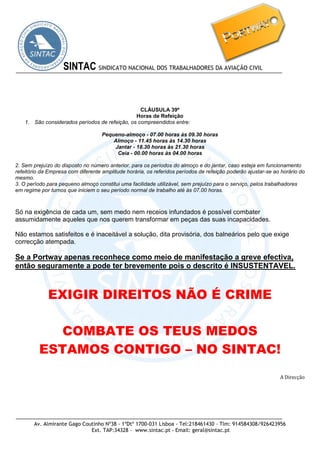 3) O sindicato cita artigos do código do trabalho e apela aos funcionários para exigirem integralmente os seus direitos sem medo de represálias.