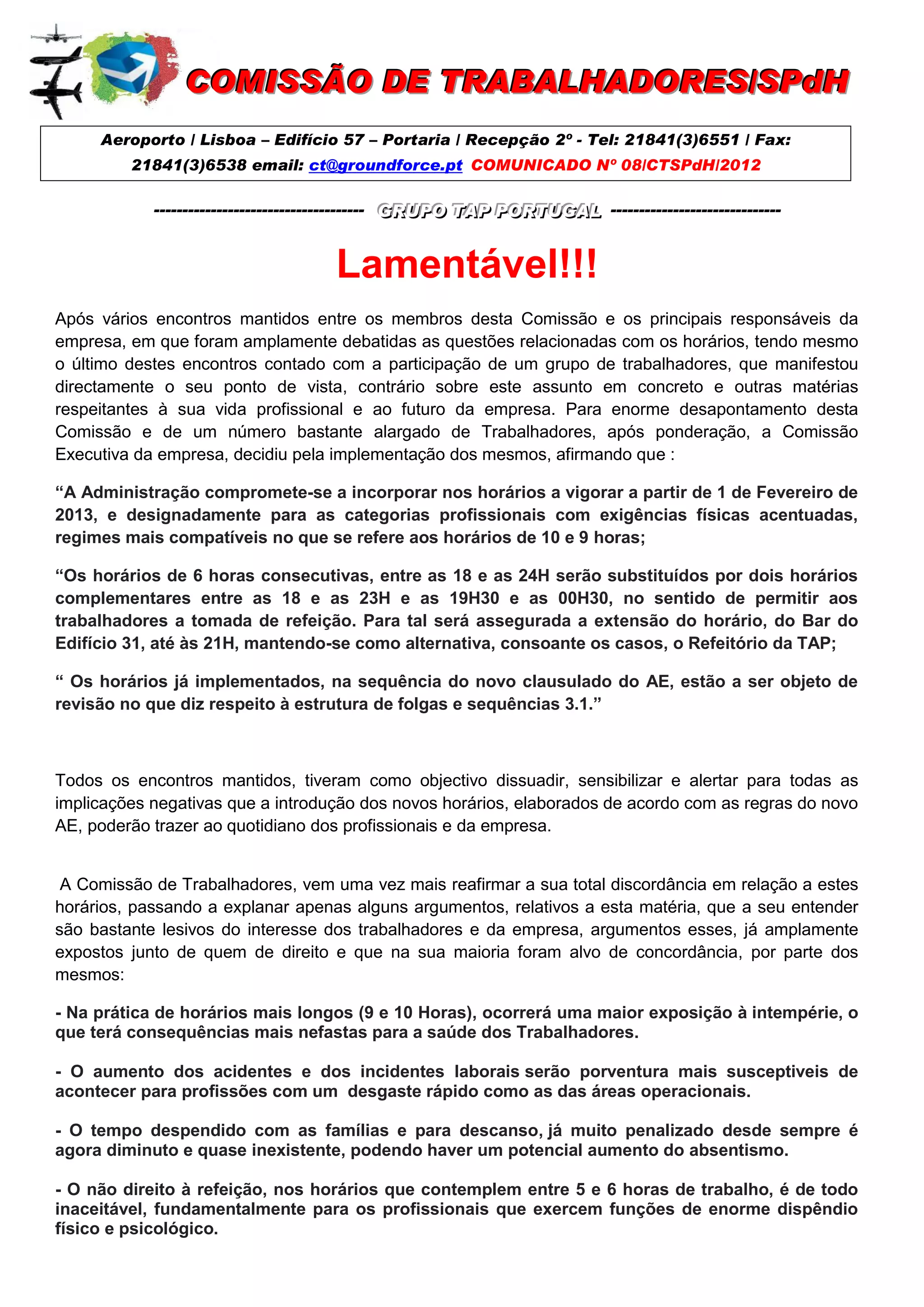 A Comissão de Trabalhadores expressa sua discordância com a decisão da empresa de implementar novos horários de trabalho. Os horários mais longos podem levar a maiores riscos à saúde e segurança dos trabalhadores e reduzir o tempo para descanso e família. A Comissão acredita que os trabalhadores já fizeram muitos sacrifícios e que esta mudança não é justa. Eles continuarão lutando para reverter esta decisão.