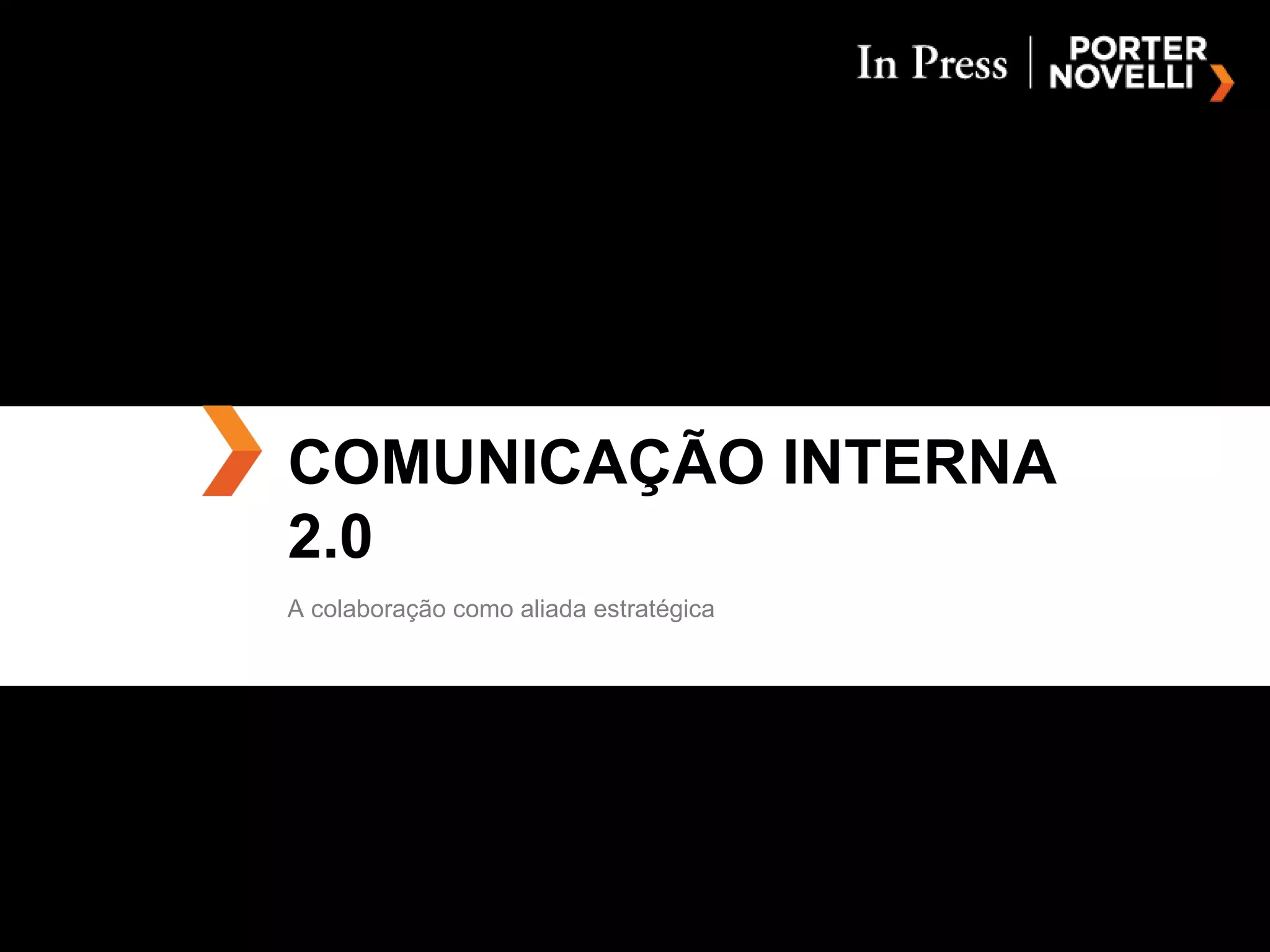 O documento discute a importância da comunicação interna 2.0 nas organizações através da colaboração em redes sociais. Ele destaca que as pessoas e empresas estão cada vez mais conectadas através da internet, e que as redes sociais podem ser aliadas estratégicas se usadas para compartilhar conhecimento, criar comunidades internas e permitir a inovação através da interação.