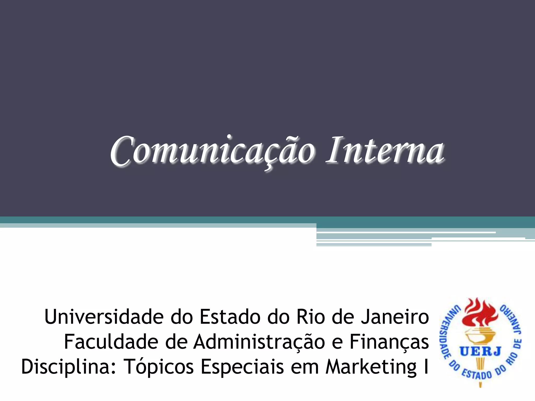 O documento discute a comunicação interna em empresas, definindo-a e explicando sua importância. Também aborda princípios da comunicação interna estratégica, cultura organizacional, exemplos de instrumentos e casos de sucesso como a Portugal Telecom e a Vale.