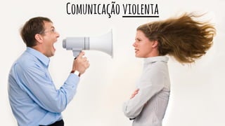 Este documento discute a Comunicação Não-violenta e apresenta seus quatro componentes: 1) Observar os fatos sem julgamentos, 2) Expressar sentimentos, 3) Articular necessidades, e 4) Fazer pedidos específicos. A abordagem busca promover empatia, consideração e compaixão nas interações, ao invés de estratégias violentas como julgamentos, opiniões e exigências.
