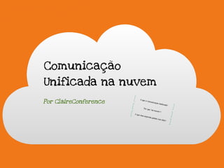 A Comunicação Unificada permite acesso a videoconferência, chat, compartilhamento de tela e arquivos através da Internet e rede telefônica. Isso é possível por meio da Computação em Nuvem, que oferece esses serviços de comunicação em servidores virtuais em qualquer lugar. As vantagens para as empresas incluem um ambiente completo e flexível de comunicação, redução de custos com infraestrutura e viagens, além da possibilidade de integrar a solução com recursos existentes e liberar o departamento de TI para