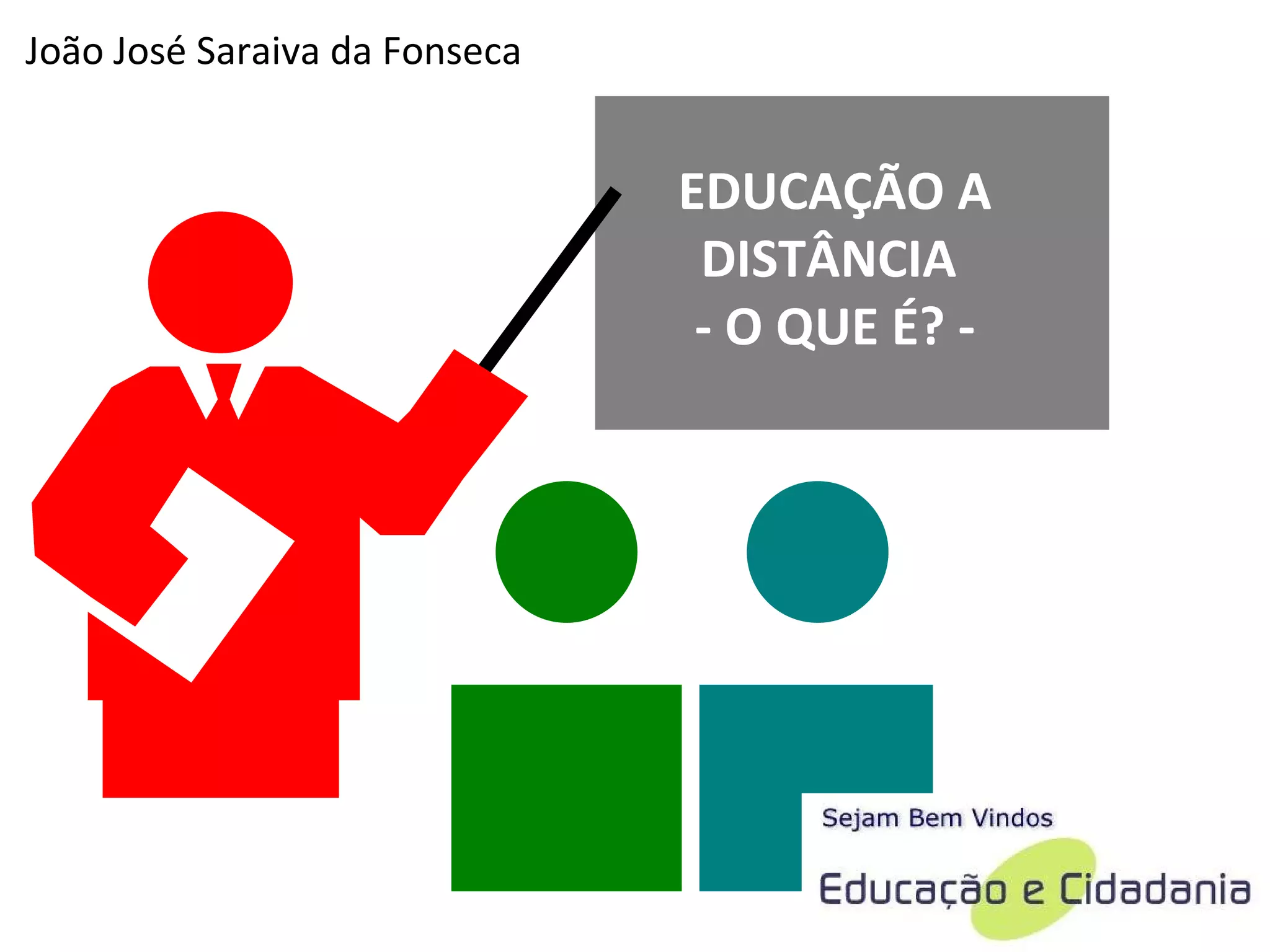 A educação a distância é uma modalidade educacional caracterizada pela mediação didático-pedagógica através de tecnologias de informação e comunicação, permitindo que alunos e professores atuem em tempos e locais diversos. Envolve a separação entre aluno e professor durante a maior parte do processo de ensino, com a comunicação interativa mediada por instituições. Elementos essenciais incluem a transmissão de informações, comunicação entre participantes e a utilização de meios instrucionais.