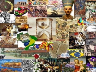 O documento discute a história como ciência humana que estuda o desenvolvimento do homem em sociedade ao longo do tempo. Apresenta os principais períodos históricos como Pré-História, Idade Antiga, Idade Média, Idade Moderna e Idade Contemporânea, além de detalhar os tempos da história brasileira desde o período colonial até a redemocratização.