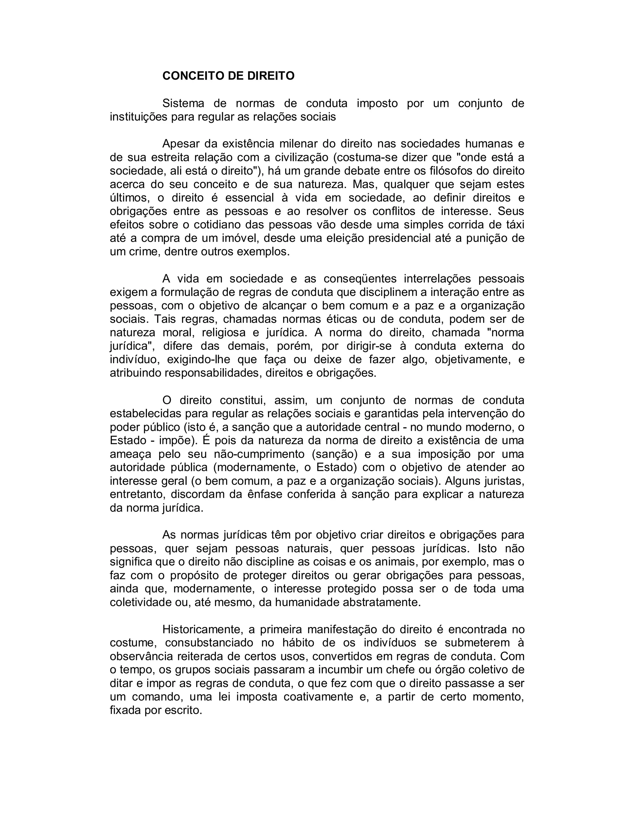 O documento discute o conceito de Direito Tributário. Ele é definido como o ramo do Direito Público que regula as relações jurídicas entre o Estado e os particulares no que se refere à arrecadação de tributos. A disciplina estuda a imposição, escrituração, fiscalização e arrecadação de impostos, taxas e contribuições para gerar receita para o Estado.