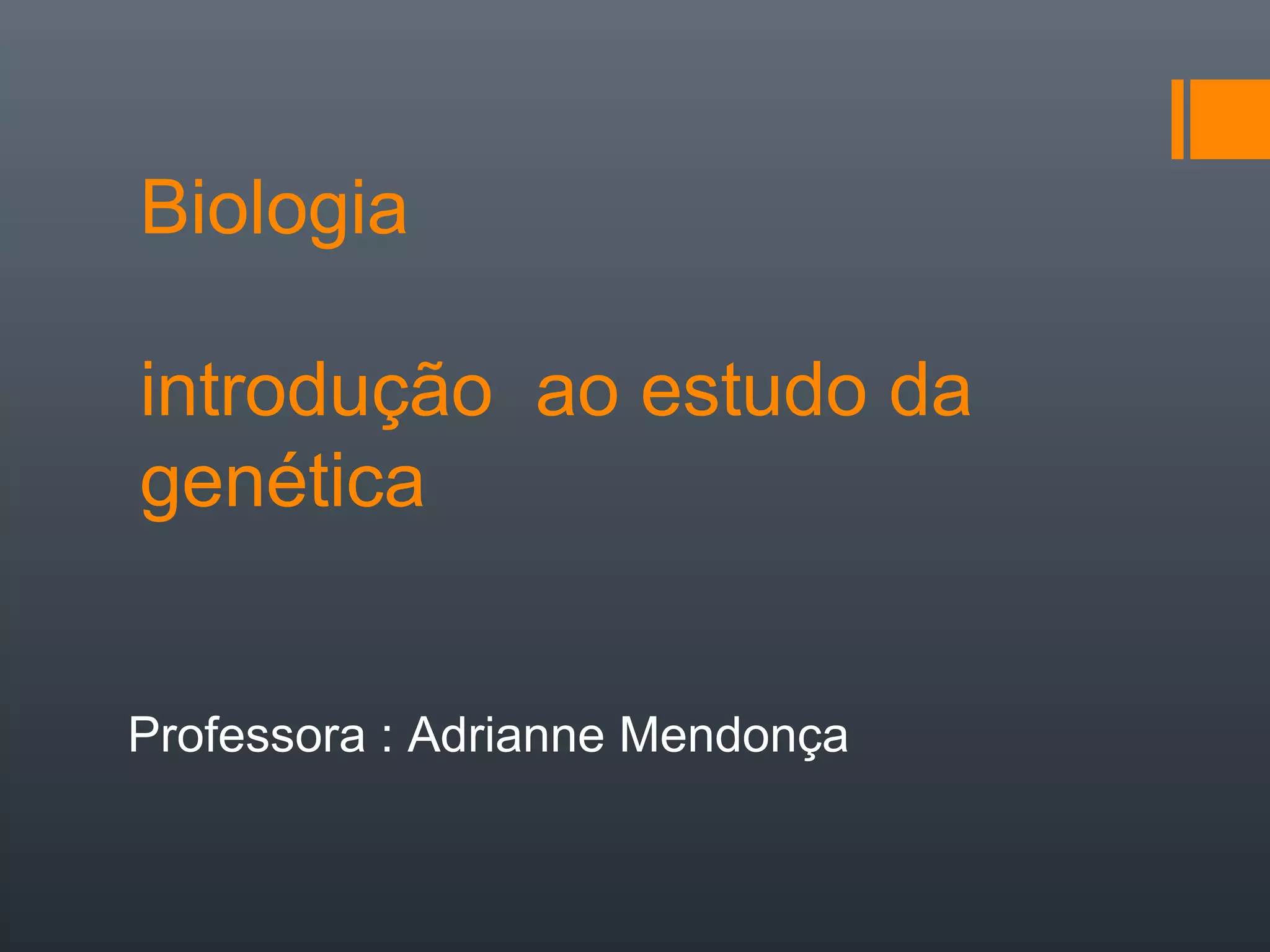 O documento apresenta conceitos básicos de genética, incluindo definições de termos como gene, cromossomos homólogos, locus, alelos, genótipo, fenótipo, entre outros. Resume os experimentos pioneiros de Gregor Mendel com ervilhas e como isso levou ao desenvolvimento das leis da hereditariedade, especialmente a lei da segregação dos alelos.