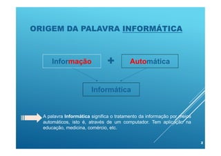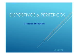 1) O documento discute conceitos introdutórios sobre dispositivos e periféricos, incluindo a origem da palavra informática e definições de informação e informação digital.