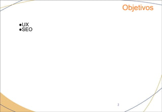 O documento discute os conceitos de UX (User Experience) e SEO (Search Engine Optimization). Apresenta a evolução da UX no Twitter entre 2006 e 2015 e fornece 10 dicas para melhorar a experiência do usuário em aplicativos móveis. Também explica os principais fatores para otimizar sites para mecanismos de busca como conteúdo de qualidade, navegabilidade e compartilhamento social.