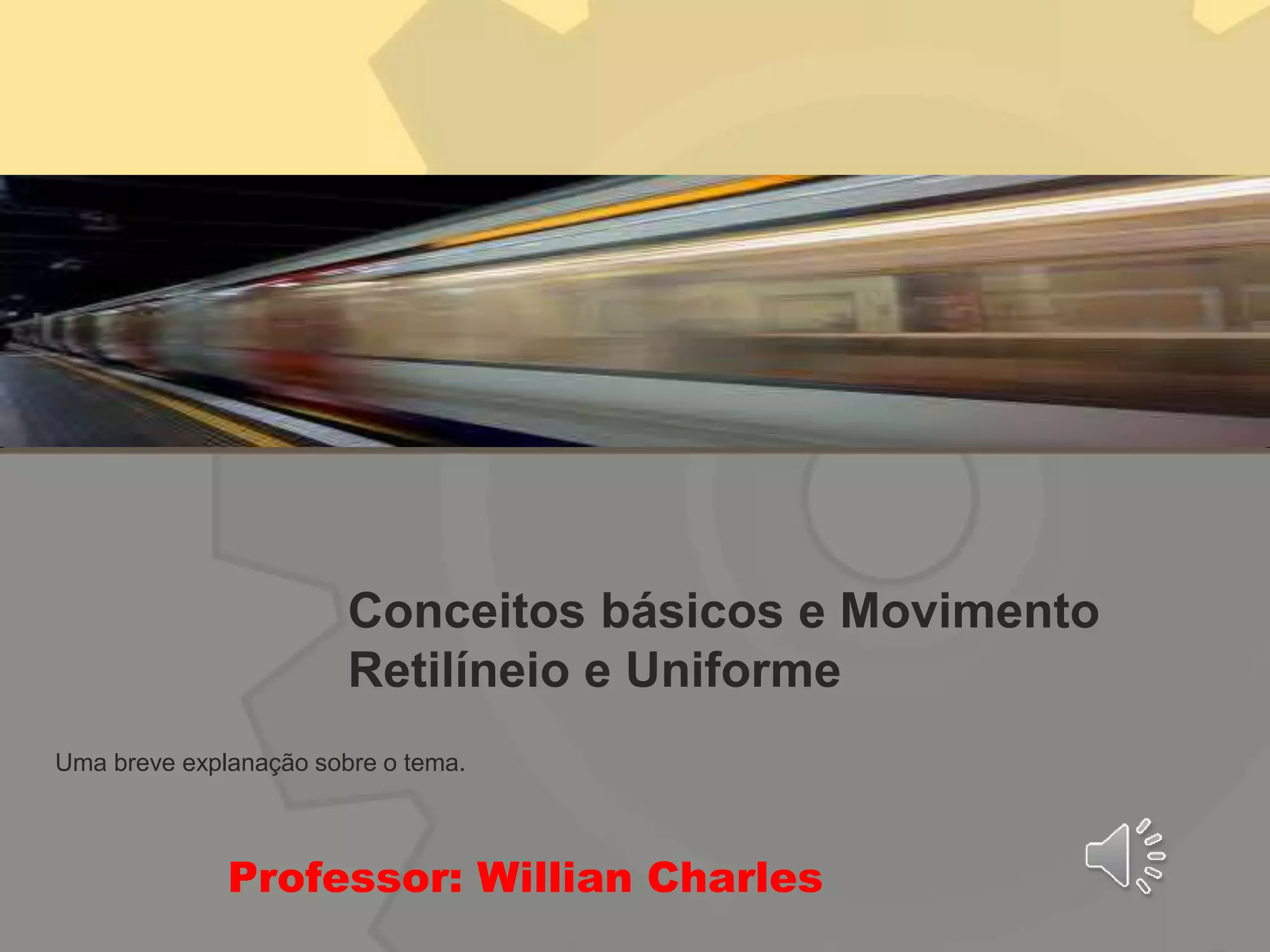 O documento apresenta os conceitos básicos de movimento, incluindo: 1) referencial e perspectivas de observação do objeto (partícula ou corpo extenso), 2) definições de movimento, repouso e trajetória, 3) distinção entre deslocamento e distância percorrida, 4) cálculo de velocidade média. A segunda parte se concentra no movimento retilíneo uniforme, definindo-o e apresentando suas características e representações gráficas.