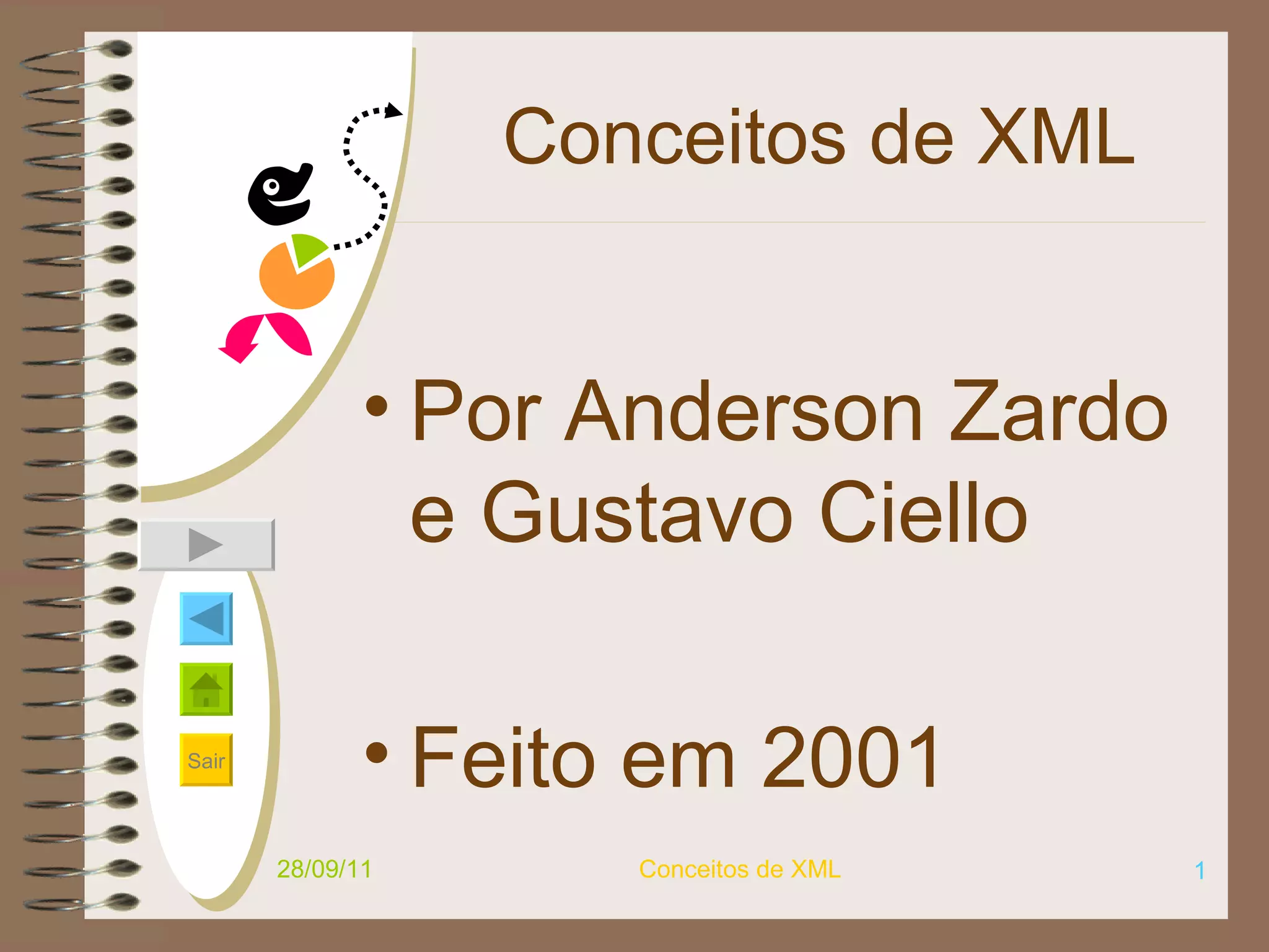 1) O documento discute os conceitos básicos de XML, incluindo suas características, definições e padrões.