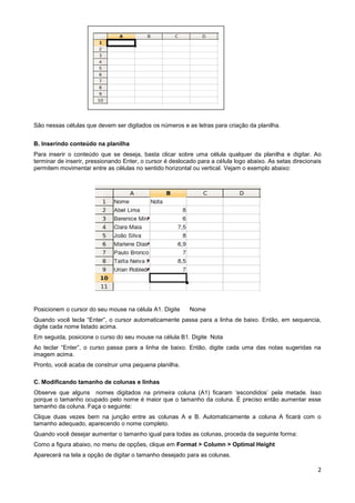define o que chama de “Célula”. Na formação dessas células estão na vertical as colunas: A, B, C, D, ... na