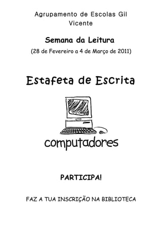 A escola realizou uma Semana da Leitura com várias atividades, incluindo uma Estafeta de Escrita onde os alunos poderiam participar inscrevendo-se na biblioteca.