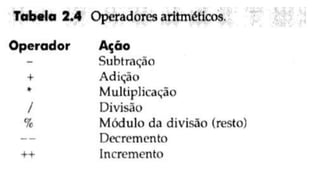 O documento discute operadores aritméticos e lógicos, condicionais e tomada de decisões no curso OBI. Ele fornece exemplos de operadores como adição, subtração, multiplicação e divisão, além de exemplos de tabelas verdade e condicionais if/else para tomar decisões baseadas em condições.