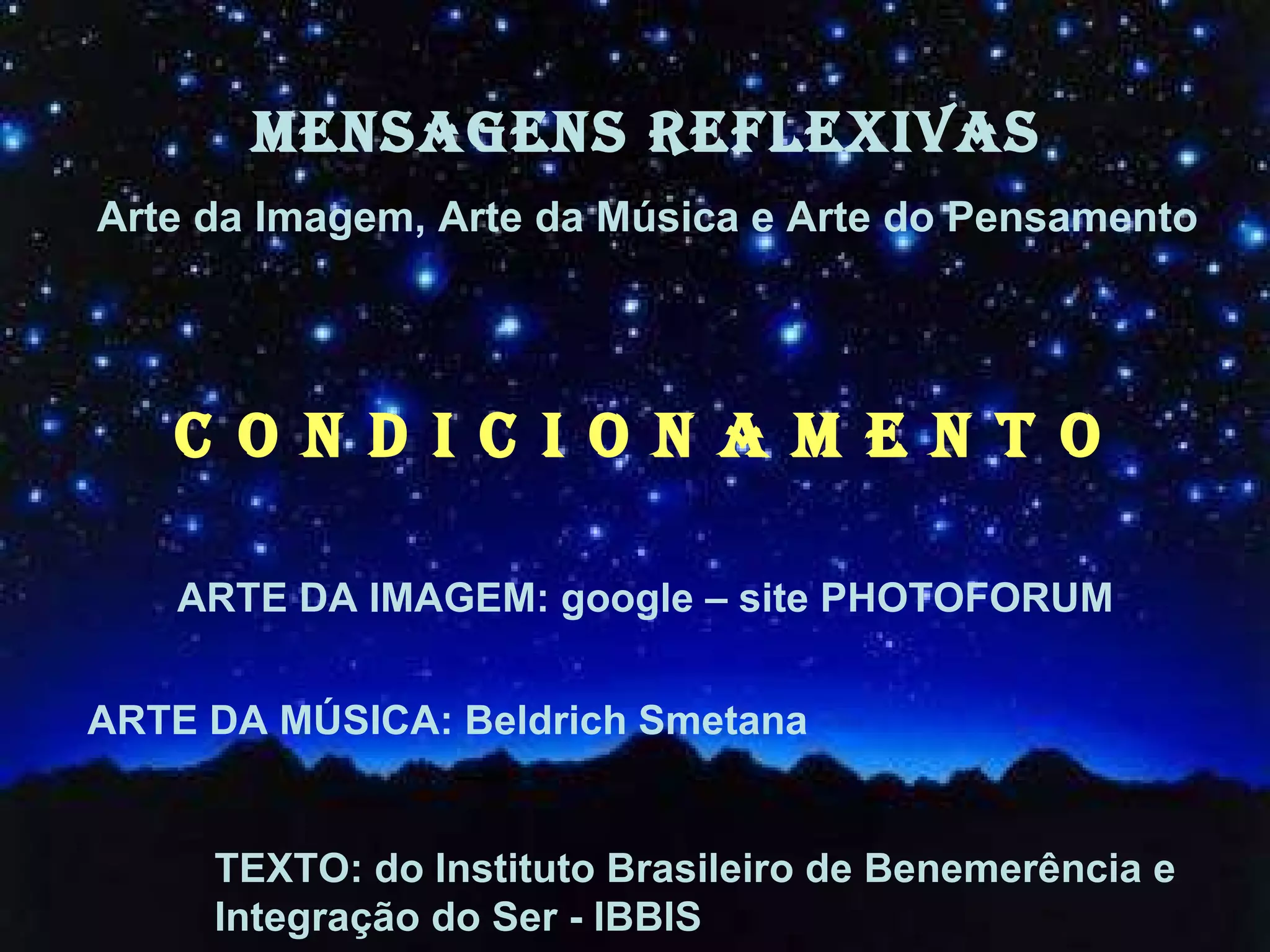 O documento discute o conceito de condicionamento e como ele prende as pessoas em padrões mentais rígidos que criam divisões e conflitos. O condicionamento nos faz perder a liberdade interior e seguir cegamente crenças e ideologias. Abrir-se ao descondicionamento pode levar as pessoas a se redescobrirem e se conectarem com sua essência mais profunda. O IBBIS foi criado para ajudar nesse processo de transformação individual.