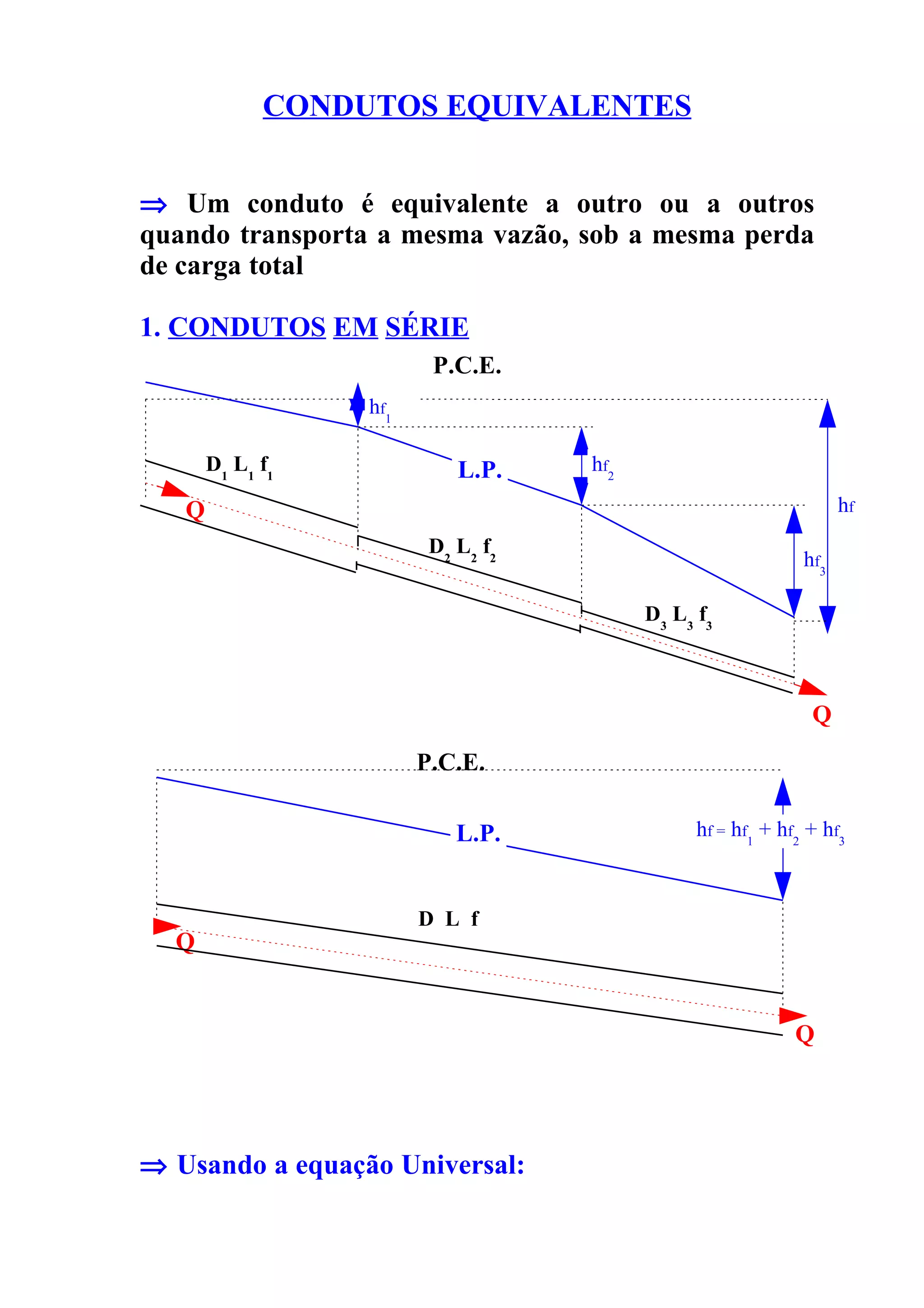 1) Um conduto é equivalente a outro quando transporta a mesma vazão sob a mesma perda de carga total.