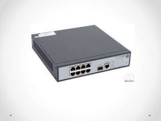 O documento discute os conceitos básicos de redes de computadores, incluindo modelos de rede (centralizada, descentralizada e distribuída), principais equipamentos (switch, hub, roteadores e computadores), tipos de conexão (com fios e sem fios), topologias de rede (estrela, anel e barramento) e suas vantagens e desvantagens.