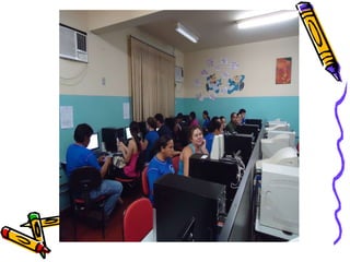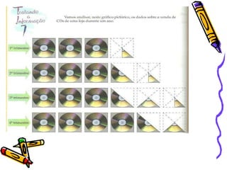 O documento descreve uma aula sobre a leitura e interpretação de gráficos e tabelas por alunos do EJA noturno. Os alunos responderam perguntas sobre diferentes gráficos e tabelas e construíram seus próprios gráficos representando suas notas do 1o, 2o e 3o bimestre usando diferentes tipos de gráficos. Eles concluíram que precisam estudar mais em algumas disciplinas para melhorar o desempenho.