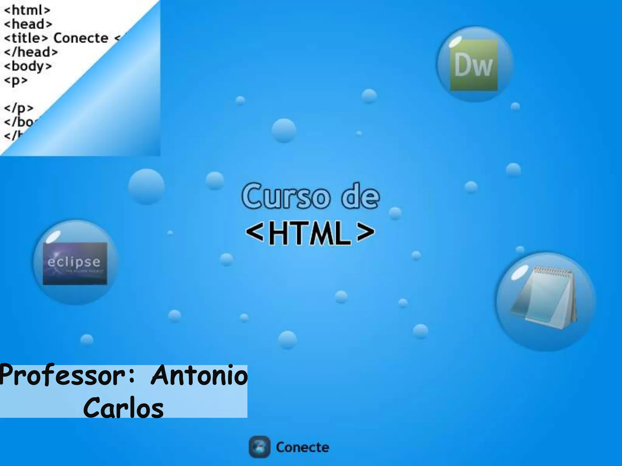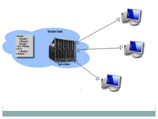 HTML é uma linguagem de marcação usada para criar páginas da web. Foi criada por Tim Berners-Lee e permite que documentos sejam interpretados por navegadores. Servidores web aguardam solicitações de browsers para entregar páginas, imagens, sons e vídeos.