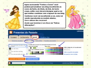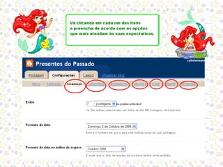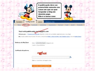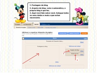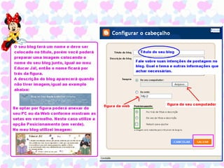 O documento fornece dicas sobre como configurar um blog para compartilhar dicas sobre o uso de mídias em sala de aula, incluindo escolher um provedor de hospedagem, escolher um tema e personalizá-lo, e começar a publicar dicas e conteúdos relevantes.