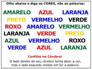 O documento discute como o cérebro processa informações visuals de forma enganosa, mostrando como pontos coloridos podem aparecer ou desaparecer dependendo de onde o olhar se foca, ilustrando que nem sempre vemos exatamente o que acreditamos ver.