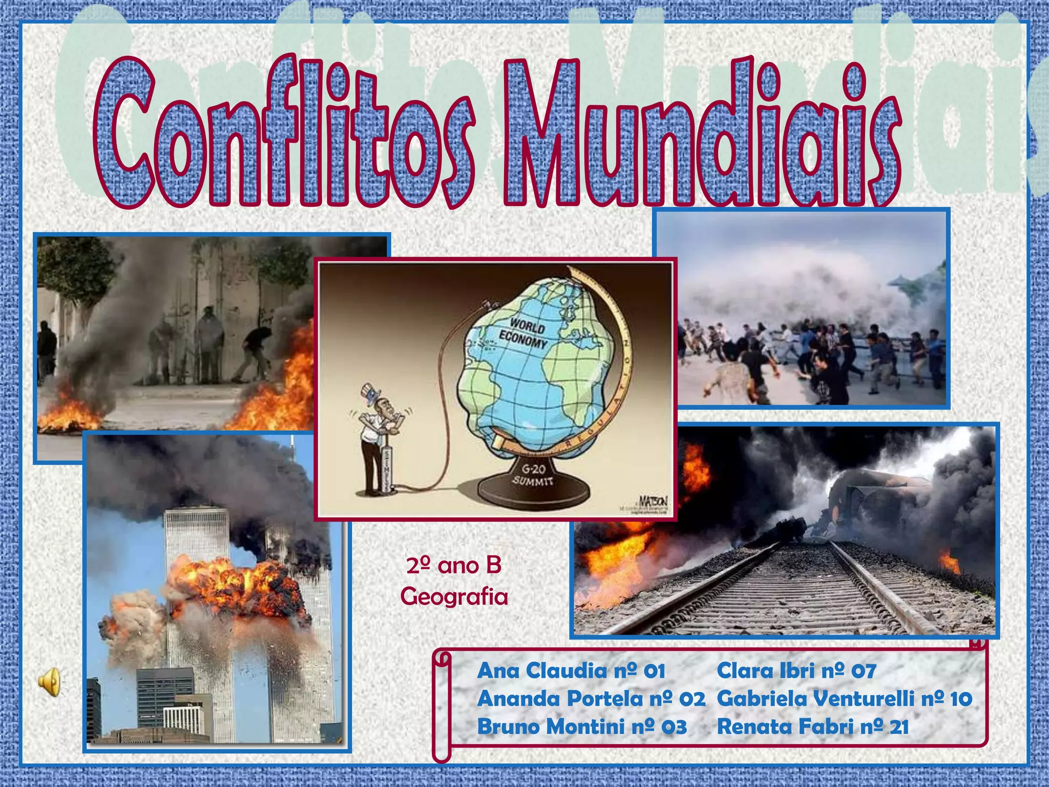 O documento descreve brevemente alguns conflitos geopolíticos ao redor do mundo, incluindo a Guerra da Geórgia, as guerras da Chechênia contra a Rússia, e o conflito entre a Croácia e a Iugoslávia. Também menciona ataques terroristas notórios na Europa, como os atentados em Londres em 2005 e em Madri em 2004.