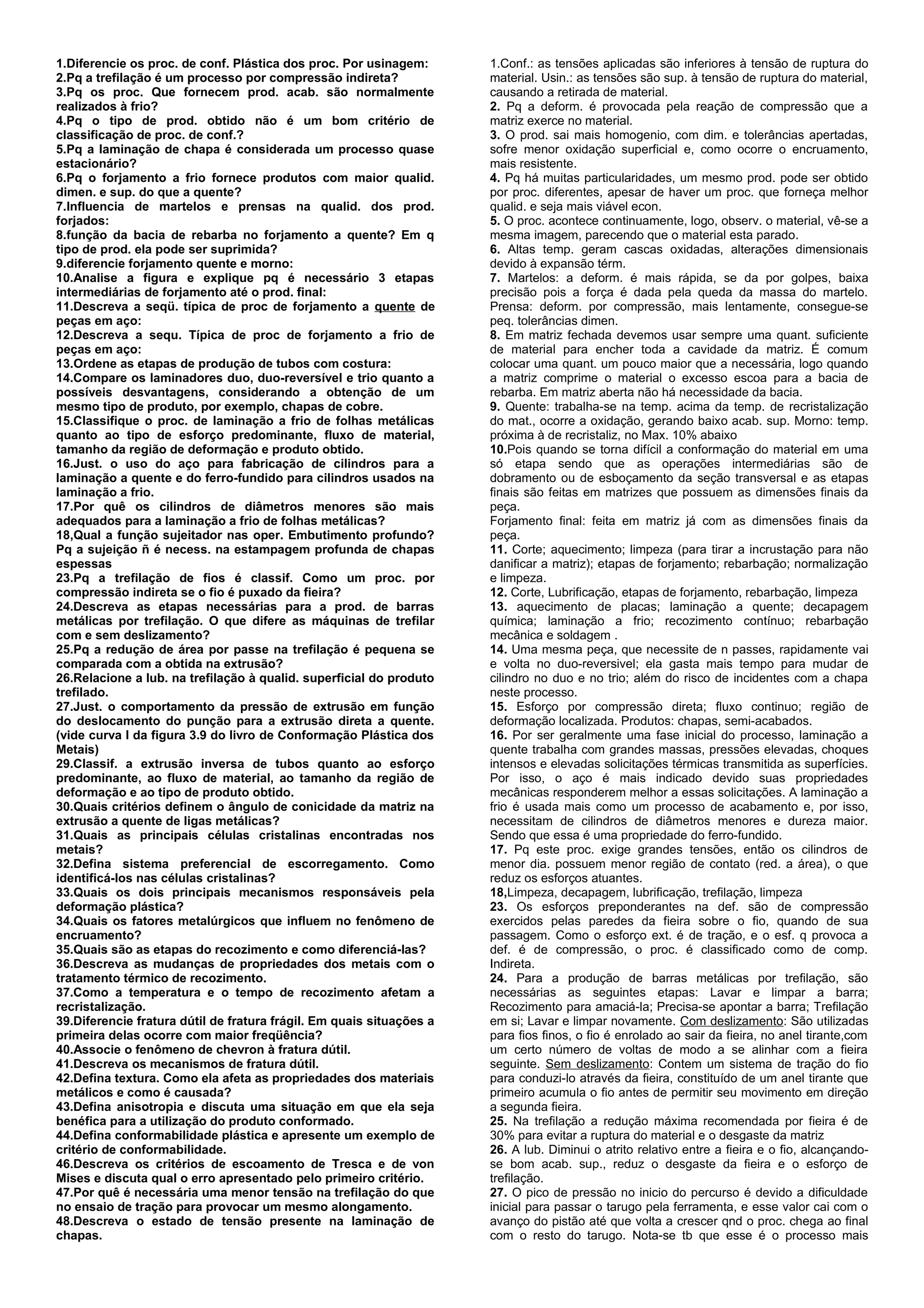 1. Os processos de conformação plástica aplicam tensões inferiores à tensão de ruptura do material, enquanto os processos de usinagem aplicam tensões superiores, causando a remoção de material.