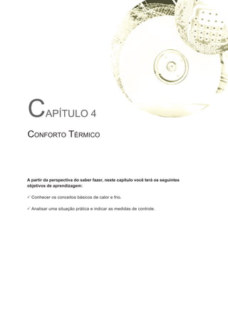 1) O capítulo discute conforto térmico no ambiente de trabalho e como ele pode afetar os trabalhadores.