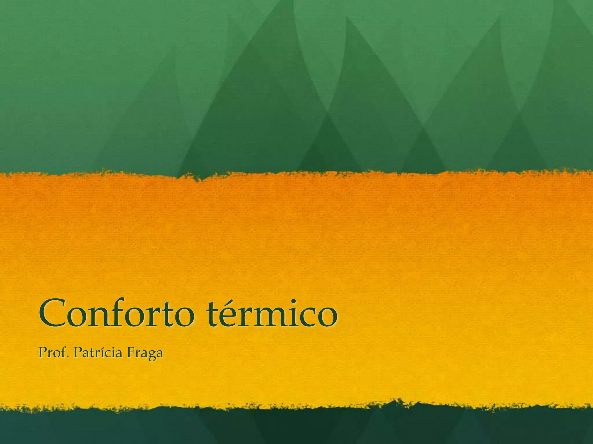 O documento discute o conceito de conforto térmico e como ele é definido pela sensação de bem-estar relacionada à temperatura. São apresentados sete parâmetros que influenciam o equilíbrio da temperatura corporal, incluindo fatores do próprio corpo e do ambiente externo. Vários índices de conforto térmico são descritos, como a Carta de Olgyay e a Temperatura Efetiva, que tentam integrar essas variáveis. Por fim, soluções para melhorar o conforto térmico em construções e ambient