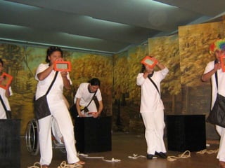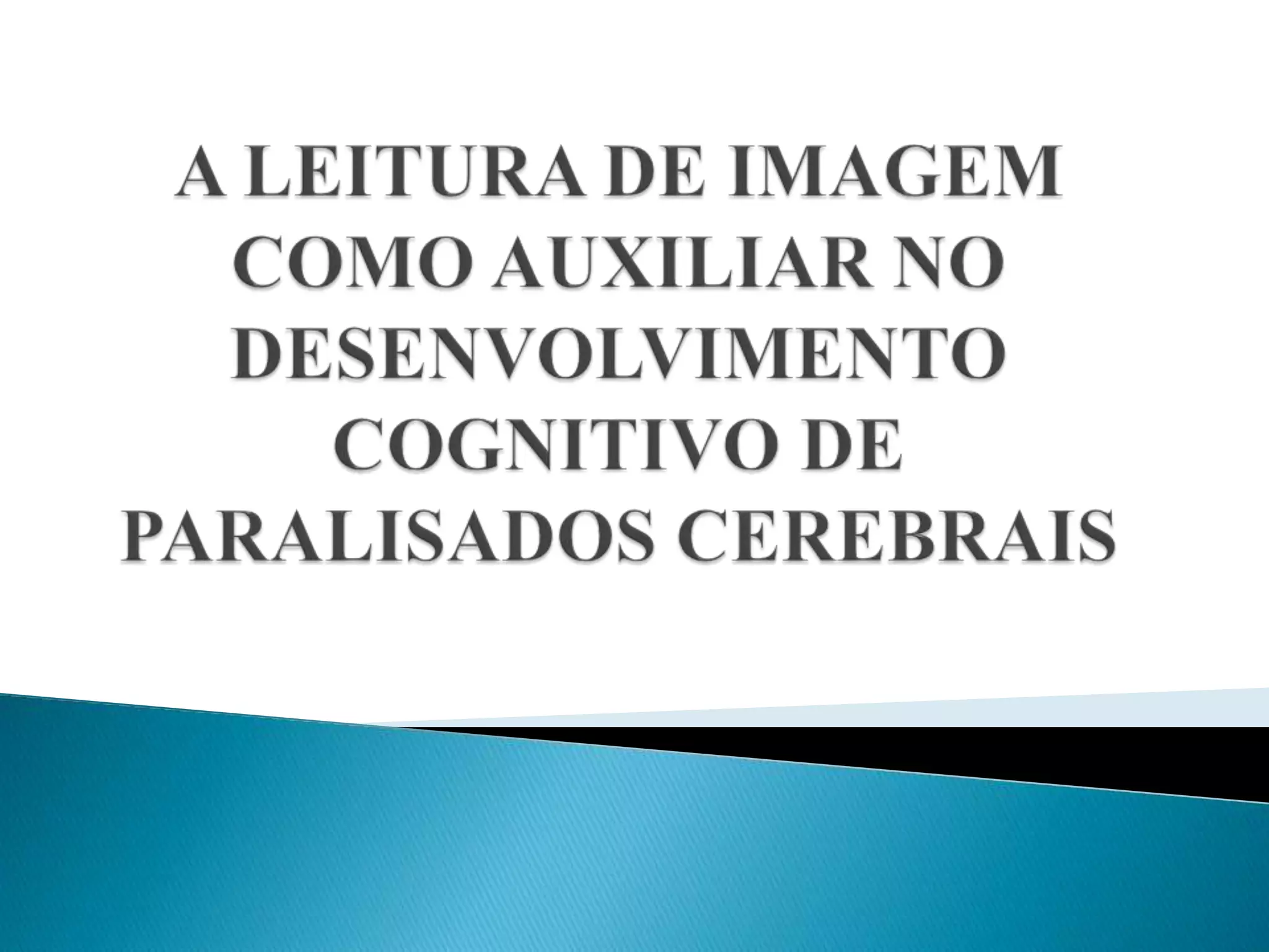 O documento discute como a leitura de imagens pode auxiliar no desenvolvimento cognitivo de pessoas com paralisia cerebral. Seu objetivo é investigar como a leitura de imagens pode aumentar a expressão e desempenho cognitivo desses alunos, utilizando obras de artistas como Bispo do Rosário, Edward Munch e Vera Melin. A pesquisa foi realizada com alunos, professores e pais de uma escola especial.