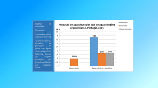 O documento discute vários tópicos relacionados ao litoral português e à atividade pesqueira. Aborda a erosão costeira, os tipos de costa, acidentes geográficos, a pesca e a aquicultura. Também discute a Política Comum de Pesca da UE e como ela influencia a gestão dos recursos hídricos e a frota pesqueira portuguesa.