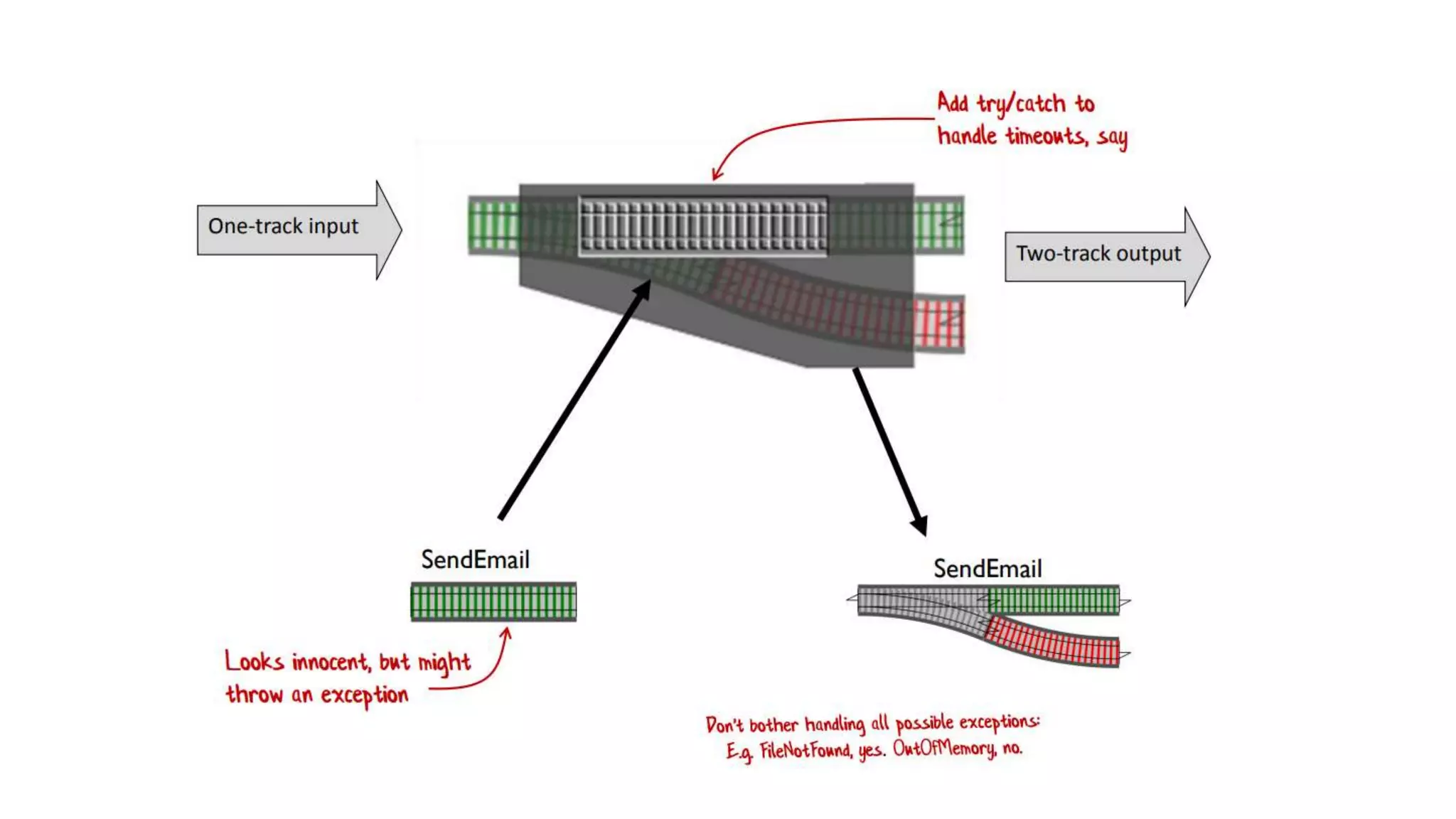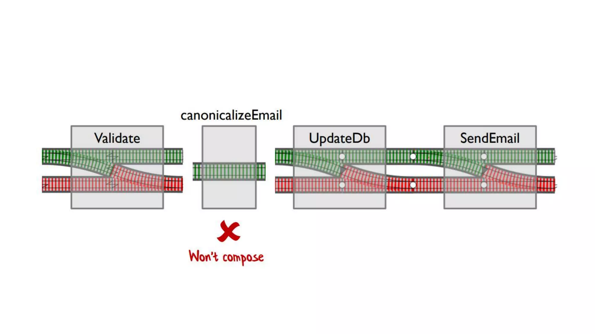 O documento introduz o conceito de Programação Orientada a Trilhos (ROP), onde funções são modeladas como "trilhos" para lidar com erros de forma funcional. A analogia dos trilhos mostra como compor funções encapsulando sua lógica interna. Um adapter é criado para permitir a composição, representando funções como "TwoTrack" que podem retornar resultados ou erros. Exemplos demonstram como validações, mapeamentos e funções que lançam exceções podem ser implementadas dentro deste modelo.