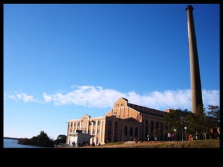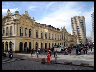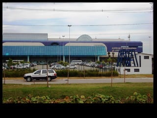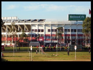O documento apresenta alguns dos principais pontos turísticos e locais de Porto Alegre, como o Aeroporto Salgado Filho, o Laçador, o Mercado Público, a Prefeitura de Porto Alegre, a Fonte Talaverya de la Reina, o Theatro São Pedro, a Usina do Gasômetro, o Lago Guaíba, o Estádio Olímpico e o Estádio Beira-Rio.