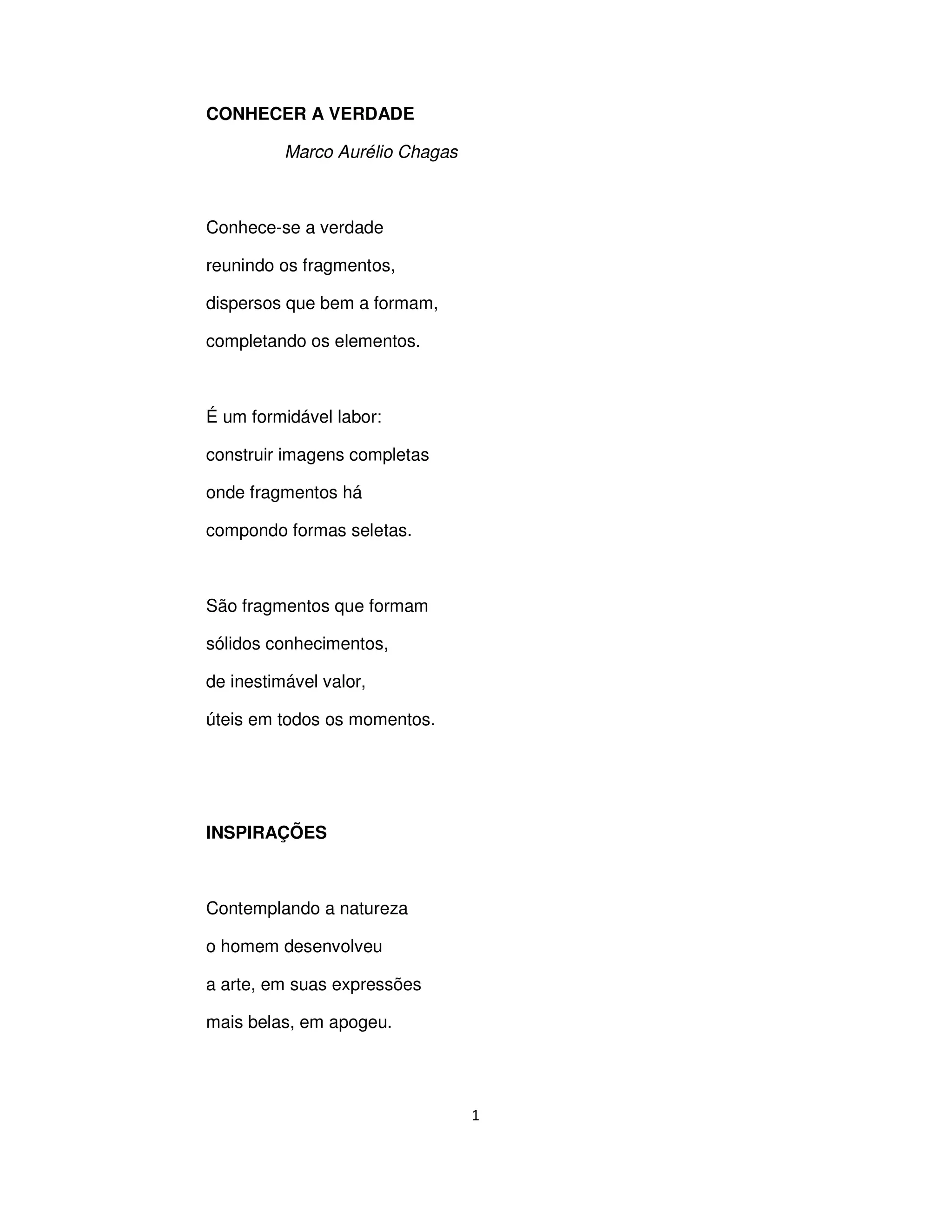 1) O poema descreve a busca pela verdade através da compreensão dos fragmentos dispersos de informação e como a natureza inspirou a arte humana.