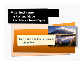 O documento discute a racionalidade científica e a questão da objetividade do conhecimento científico. Aborda a perspectiva de Thomas Kuhn sobre o assunto, destacando que o conhecimento científico fornece uma interpretação da realidade que depende dos métodos e instrumentos usados, não sendo a única maneira de enquadrar a realidade.