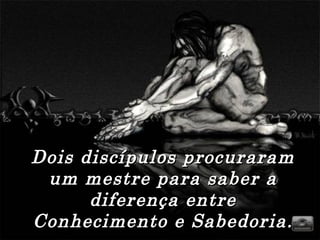 O mestre ensinou aos discípulos que o conhecimento é adquirido através de estudos, enquanto a sabedoria vem da experiência vivida. Ele pediu aos discípulos para colocarem grãos de feijão nos sapatos e subirem uma montanha. Um sofreu durante a subida, enquanto o outro não teve dificuldades porque cozinhou os grãos antecipadamente, demonstrando sabedoria adquirida pela experiência.