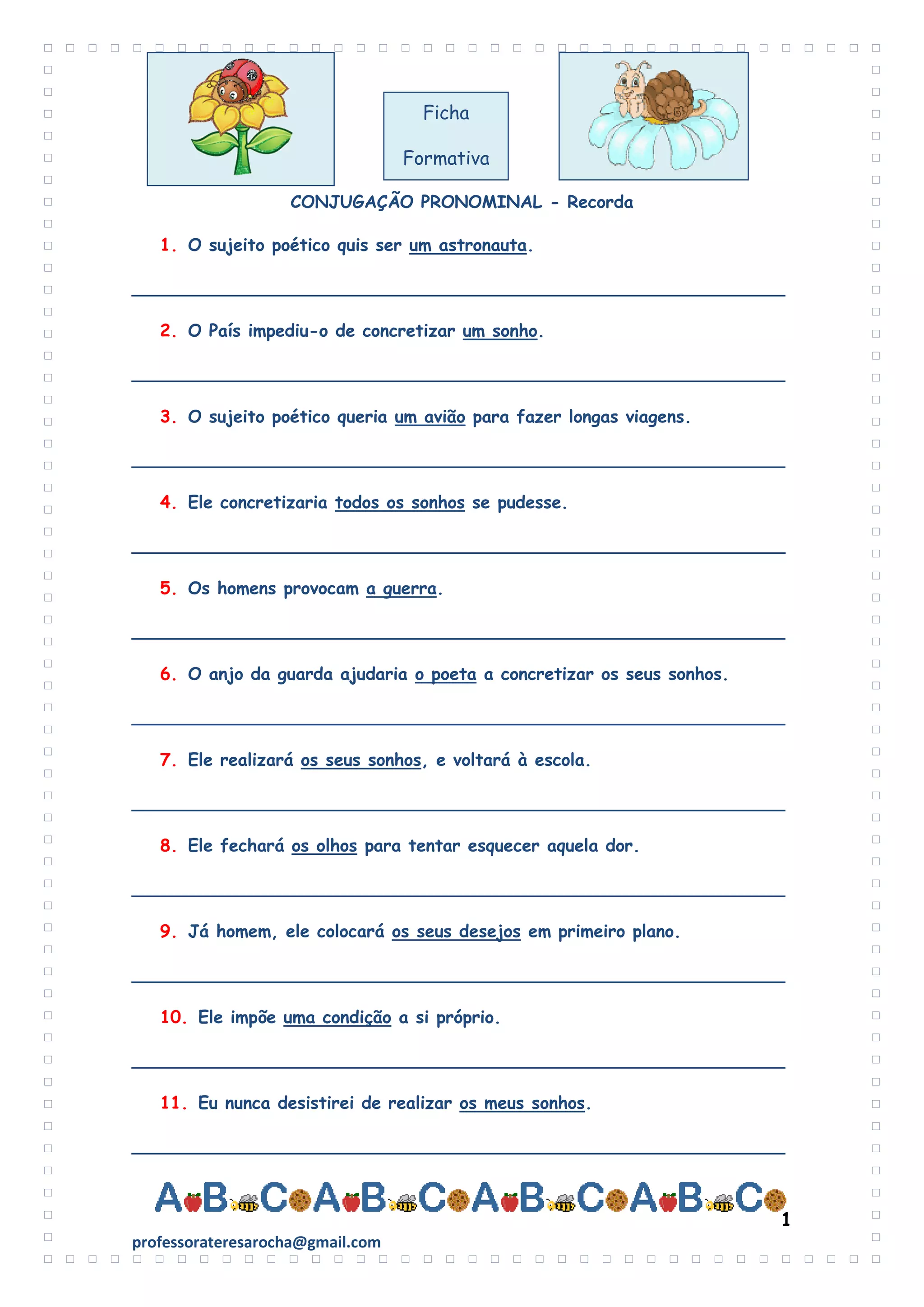 O documento apresenta 11 frases sobre os sonhos e desejos de um sujeito poético. Ele queria ser astronauta e ter um avião para viajar, mas o país o impediu de realizar esses sonhos. Agora adulto, ele promete nunca desistir de concretizar seus objetivos, colocando-os em primeiro plano.
