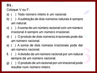 3) São definidos os conjuntos numéricos como naturais, inteiros, racionais e reais.