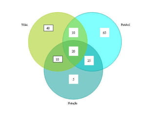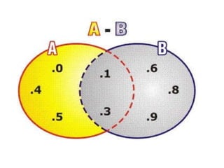 O documento descreve os conceitos básicos de conjuntos, incluindo sua representação, elementos, operações entre conjuntos como união, intersecção e diferença. Exemplifica essas operações e apresenta alguns problemas sobre conjuntos para exercitar o entendimento do leitor.